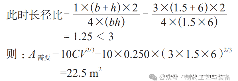 实验室的建筑定性一般为公共建筑或丙类厂房。为了兼顾运输需要和管路敷设,气源站一般设在建筑物首层靠外墙的房间处或室外,以尽量满足通风、泄爆要求。JGJ 91—2019 《科研建筑设计标准》对此做了适当放宽,日用量不到一瓶的气体,可以在有安全防护设施(如带排风的气瓶柜等)时放置一瓶在室内。一般来说,气瓶间适宜做成半敞开式的,以便进行自然通风措施,但要同时考虑避免太阳直晒的措施,例如布置在建筑背阴面或设置百叶。如果无法满足自然通风条件,则应有至少 3次 / 小时的机械通风,对于可燃气体,通风次数应达到 6次 / 小时,并考虑 12次 / 小时的事故排风。对于多种类别气体同时存在的情况,应按气体的火灾危险性和毒性进行类别判定,并综合考虑化学反应可能性、法规要求的管控级别等各种因素进行布置。一般来说,可以按照易燃性气体、毒性 / 腐蚀性气体、氧化性 / 惰性气体、剧毒性气体进行区分布置。根据 GB 50016—2014 (2018 年版)《建筑设计防火规范》,爆炸下限小于 10% 的气体属于甲类物质,氢气、甲烷、乙烷、乙炔等都在其列。对于甲类气体钢瓶间,为了不影响建筑定性,当层的甲类区面积需不超过本层建筑面积的 5%,同时需要满足泄爆面积计算[1]。某设计实例中,整体建筑定性为丙类厂房,首层靠外墙处设了一个 3m 宽,1.5m 深的钢瓶间,此深度满足钢瓶摆放和操作检修空间需求。首层层高 6m,梁高 1m。则可获得的*大泄爆面积为 :