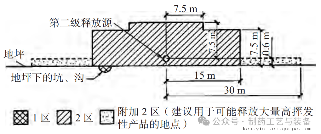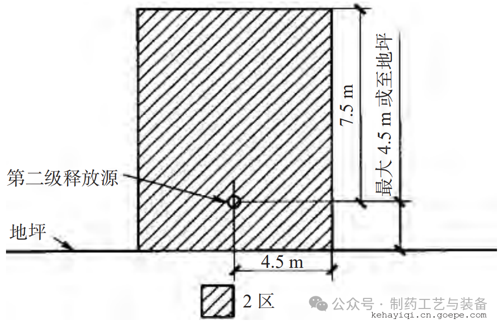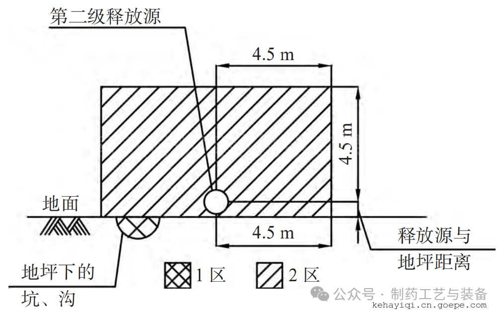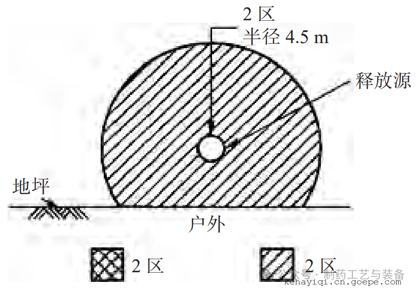 图1 可燃气体重于空气的爆炸危险区域划分示例图(1)